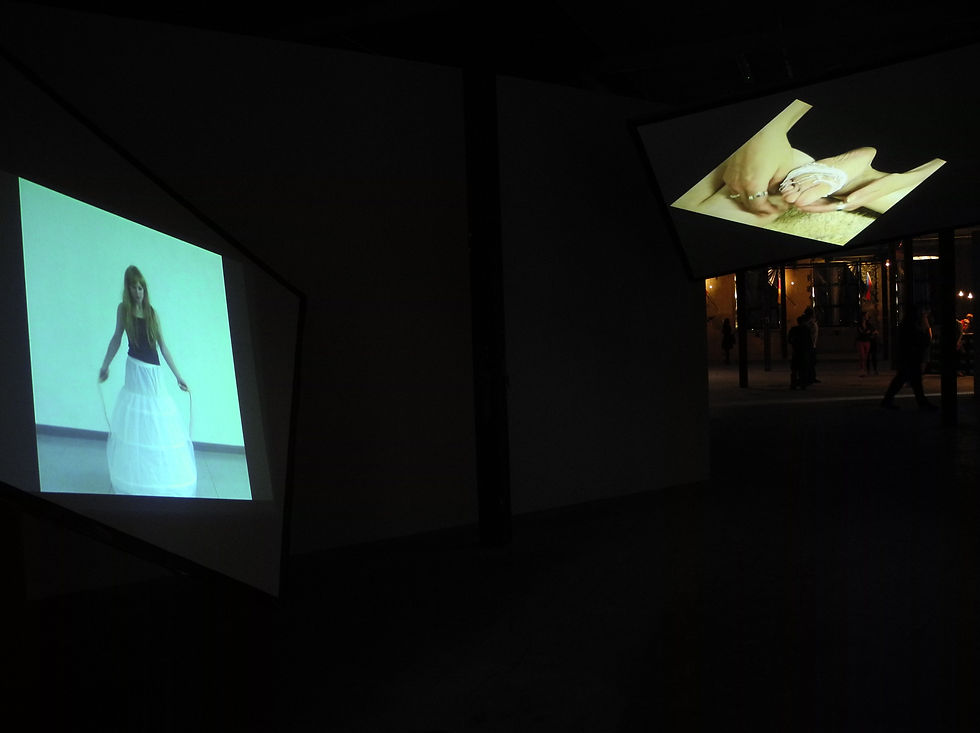 Gänseblümchen müssen sich ohne Stachel durchschlagen | aus der 3-Kanal-Videoinstallation Hippolyte | Austellungsansicht "Jack in the Box" | Halle 14 | Leipzig | 2012
